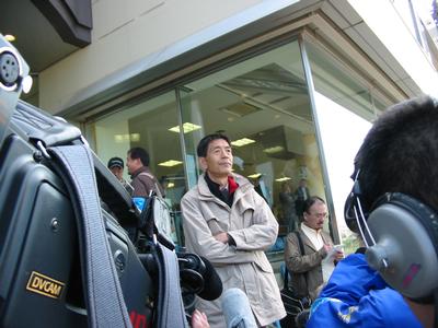 「報道陣に囲まれ バルクの好調ぶりを説明する岡田繁幸氏」