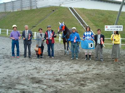 騎乗した藤倉寛幸騎手が、通算400勝を達成しました。