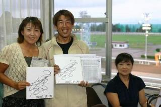 また、検量室にも訪れ、ファンである五十嵐騎手からサインをもらって大喜びでした。