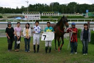 8月31日、山口竜一騎手(桧森厩舎)が旭川競馬第4レースでモエレスプライト号に騎乗し、昭和56年のデビュー以来、16,248戦目で通算2,400勝を達成しました。