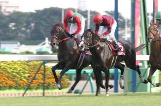 バルク初の天皇賞(秋)出走権獲得 2006.09.24 天皇賞(秋)の出走を目指すコスモバルクが中山競馬場で実施された第53回オールカマーGⅡ芝2,200mに出走、レースはコスモバルクが中団でレースを進め最後の直線最内から追い上げバランスオブゲームにハナ差の2着、勝利は逃したものの初の天皇賞(秋)への出走権を獲得しました。 五十嵐 冬樹騎手のコメント 「道中も行きたがる所もなく落ち着いていました。最後の直線では良く伸びてくれました。 天皇賞(秋)へ出走権が獲得できてホッとしています。」 【写真提供:日高軽種馬振興対策推進協議会】