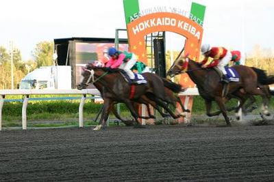 10月12日、旭川競馬場で交流重賞競走 第9回エーデルワイス賞(サラ 2歳牝馬 オープン 1,600m)が行われ、岩手競馬所属の小林俊彦騎手騎乗の7番人気 パラダイスフラワーが1分43秒1のタイムで優勝しました。