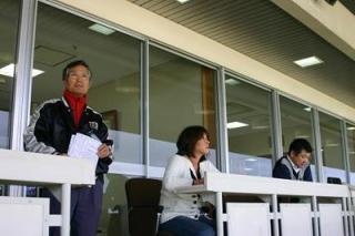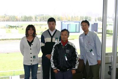 馬主室への招待イベント 2006.10.17 10月17日、札幌競馬場で、一般ファンを対象とした『馬主室への招待イベント』が行われ、抽選で選ばれた4名が第5レース・第6レースを馬主席から観戦しました。 参加者は、札幌市の臼井明彦さん、坂口可男さん、小樽市の江畑恵子さん、埼玉県埼玉市のカシウラミノルさん。 4名は3階の馬主室への入場は初めてで、馬券を握りしめながらレースを観戦し、とても感激していました。 なお、『馬主室への招待イベント』は、札幌秋開催中の火曜日(10月24日・10月31日・11月7日)に実施しますので、ぜひ、ご参加下さい。