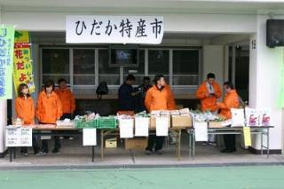 ひだか特産市 2006.10.19 10月19日、札幌競馬場で、競走馬のふるさと日高から旬の新鮮野菜や水産物、特産品の販売が行われました。 販売されたのは、トマト、きゅうり、米、長ねぎ、生しいたけ、昆布ドレッシング、平取和牛カレー、馬人(うまんちゅ)Tシャツなど。 産地直送の特産物に競馬場を訪れたファンは、大にぎわいでした。