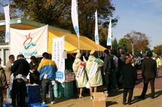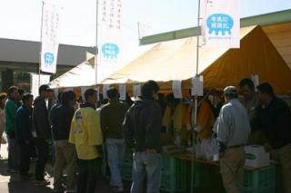 日胆地区JA青年部 農畜産物抽選会 2006.10.25 10月25日、札幌競馬場で、日胆地区JA青年部による農畜産物プレゼント抽選会が行われました。 抽選のプレゼントとして用意されたのは、トマトジュース、雷峰いちごワイン、JAブランド米「万馬券」などの農畜産物。 産地直送の農畜産物に競馬場を訪れたファンは、大にぎわいでした。