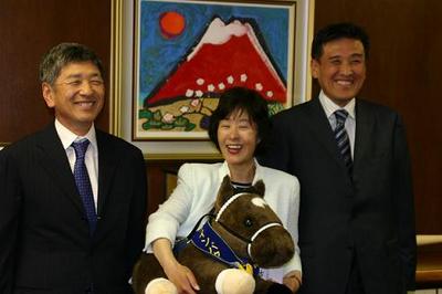 写真:吉田照哉氏・高橋はるみ知事・吉田勝己氏