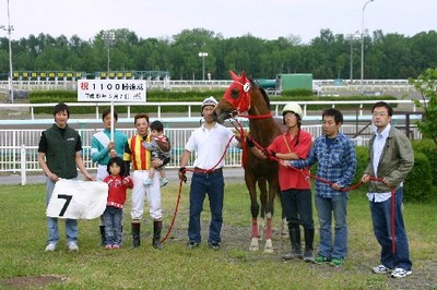 6月7日、五十嵐冬樹騎手(桑原義光厩舎)が、旭川競馬第5レース テイクミーザスターに騎乗し、平成5年のデビュー以来、7,399戦目で通算1,100勝を達成しました。