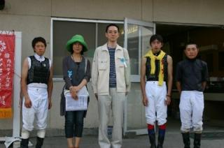 上:岩橋騎手、小林騎手、齋藤博樹騎手と記念撮影