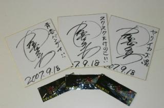 下:プレゼント商品(サイン色紙、大井競馬携帯ストラップ)