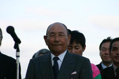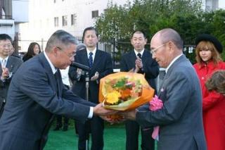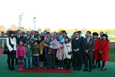 林正夫調教師 勇退式 2007.11.13 11月13日、今年度、勇退する林正夫調教師の勇退式が、札幌競馬場ウィナーズサークルで行われました。 式では、多くの関係者やファンから花束が贈られました。 写真 上:林正夫調教師 中:堂山調騎会長から花束贈呈 下:勇退式での記念撮影