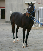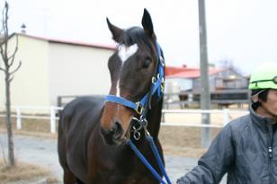 ハート型の流星をもつ岩手競馬の「トレジャースマイル」が話題となっていますが、道営競馬にも12月1日堂山厩舎に 父 ゴールドヘイロー 母 ファーストクラス(トウシヨウボ-イ)牡 黒鹿毛の1歳馬が入厩。本日13日、新聞3社・テレビ局2社を相手に500Kgの1歳馬とは思えない雄大な馬体を披露しました。