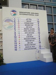 シンガポール航空国際カップの枠順決定! 2008.05.15 シンガポール・クランジ競馬場で5月18日(日)の夜に行われる『シンガポール航空国際カップGI』の枠順が下記の通り確定しました。一昨年優勝、昨年2着、3年連続でこのレースに挑戦するホッカイドウ競馬のコスモバルク(牡7歳、田部和則厩舎)は9番枠(馬番3番)の発走となりました。 SINGAPORE AIRLINES INTERNATIONAL CUP 2008(国際GI) 芝2,000m 発走予定時刻19:50(日本時間20:50) 写真:㈲サイツ 斉藤 修 氏