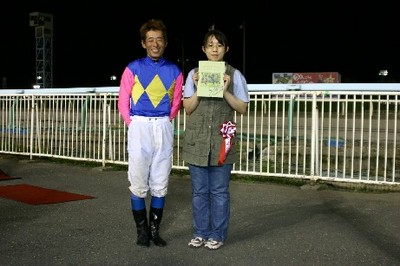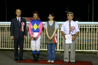 第21回目は「スパイキュール賞」で、旭川市のファンがプレゼンターを務め、優勝馬ニットウナデシコ号の原孝明調教師(馬主代理)と服部茂史騎手にそれぞれ記念品を贈呈しました。