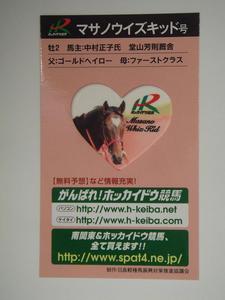 8月26日出走当日は、マサノウイズキッド出走記念品として旭川競馬場にご来場の先着
