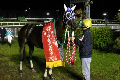 10月1日、旭川競馬場で『第8回サンライズカップ』(サラ 2歳オープン 1,600m)が行われ、宮崎光行騎手騎乗の7番人気 チョットゴメンナ号が1分45秒5で勝利!!
