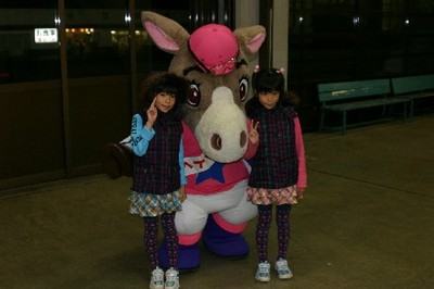 10月9日浦河町4Hクラブが旭川競馬場でホッカイドウ競馬のマスコット、ホクトくんとの記念撮影会を行いました。記念撮影後にはその場でプリントしてファンにプレゼントしました。