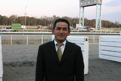 角川秀樹調教師 400勝達成! 2008.10.16 10月16日、角川秀樹調教師が、旭川競馬第3レースにプリモダンサー号で出走し、 2,818戦目で通算400勝を達成しました。 写真 400勝達成した角川調教師