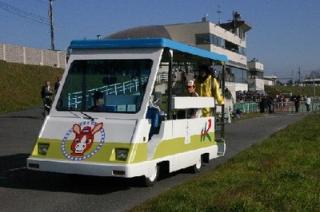 また、来年度から本稼働するバッテリーカーが試行的に運行され、入場門からスタンドまでの間を送迎しました。