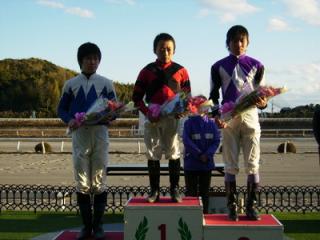 1月12日、高知競馬場で行われた第23回全日本新人王争覇戦(右1400m)は、黒澤愛斗騎手(恵多谷豊厩舎6番人気ケイエスブーケ騎乗)が、レース前半を後方2番手で待機、3~4角で仕掛けると、落ち着いた騎乗で直線追い込み、國分祐仁騎手(浦和)を交わし優勝しました。