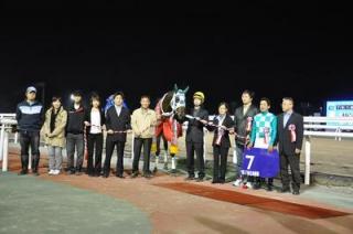 レースは、道中3番手につけたアラベスクシーズ号が直線で先頭に立ち、外から迫る1番人気のフーガ号とのたたき合いをアタマ差で振り切り、2.11.1のタイムで優勝しました。
