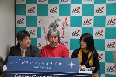 また、メインレースのパドック解説では、ダービーウイーク2009の開催場を巡っている、旅打ちライター井上オークスさんがゲストとして登場いたしました。