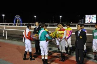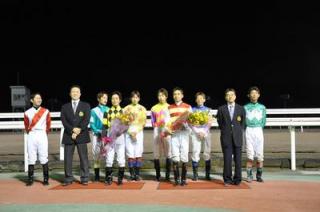 送別式では、佐々木国明騎手・川島雅人騎手から贈呈されました。両名のグランシャリオナイターでの騎乗は、明日までとなっておりますので、ご声援をよろしくお願いいたします。