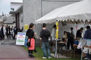 通常より1時間早い13時の開門と同時に多くのお客様にご来場いただき、鮭鍋無料サービスの引換券が先着で配付され、とねっこ広場で引き換えが行われたほか、おいもオーブン焼きが無料でサービスされました。(提供:社会福祉法人愛光会・ホッカイドウ競馬を応援する会・日高商工会)