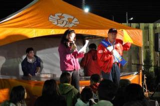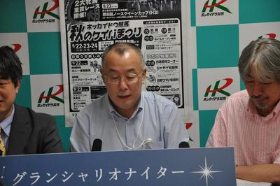 9月22日(火・祝)、「STVラジオ牧やすまさのスーパースクランブル」の公開生放送がとねっこ広場で行われました。午後3時からスタートし、パーソナリティー牧やすまささんと谷口祐子さんの競馬予想対決や上海ドールさん(オジョー、ことみ)の競馬場グルメガイドなど門別競馬場の魅力を紹介していただきました。また、ホッカイドウ競馬のパドック解説でおなじみの古谷剛彦さんもゲスト出演し、メインレース第9回フローラルカップ(H3)の展望についての解説など行われました。