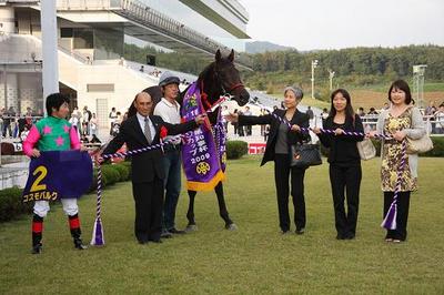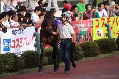 レースは、好スタート後先頭から4番手の好位置。最後の直線では先頭に立った地元岩手の2番人気ボスアミーゴ号を捕らえ、1馬身1/4差をつけて、優勝しました(1分45秒5)。