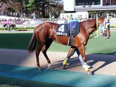 JRA東京競馬場で行われた赤松賞(2歳500万下牝馬限定 1600m 芝・左 晴・良)にクラキンコ号(牝2 堂山芳則厩舎 54 小国博行騎手 500㎏ -4 12番人気)が出走し、結果は12着でした。