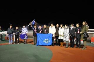 11月19日(木)、今年最後の大一番、第52回 道営記念[シンボリクリスエス賞]が行われ、もんべつ吹奏楽団のファンファーレでスタートし、桑村真明騎手騎乗の単勝2番人気コパノカチドキ号が2着ヒロアンジェロ号に4馬身差をつけて優勝(タイム:2.05.7)。