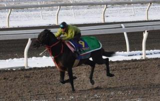 11月29日(日)に東京競馬場で行われるジャパンカップ(2400m 芝・左)に出走予定しているコスモバルク号(牡8 田部和則厩舎)の最終追い切りが、本日、門別競馬場(外走路 曇・重)で行われました。