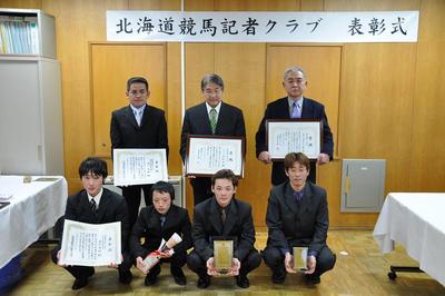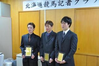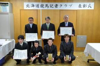 12月21日(月)、平成21年度のホッカイドウ競馬を盛り上げた競走馬や関係者の功績を称える『北海道記者クラブ表彰式』が、北海道庁会議室で行われ、受賞者には賞状や記念品が北海道競馬記者クラブから贈呈されました。