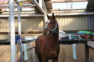 写真:2010年4月27日 門別競馬場(角川秀樹厩舎)到着時のラブミーチャン号