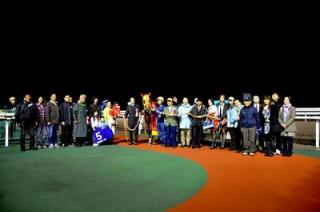 「まずは、皆様の大きな期待に応えてくれて本当に良かったです。2着のアンペアもとても地力のあるすばらしい馬なので、優勝できたことは、ラブミーチャンにとって、今後の成長に繋がるいいレースだったと思います。次走は、予定通り北海道スプリントカップを目指していきますので、今後も応援よろしくお願いいたします。」