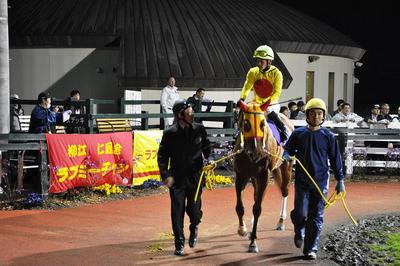「パドックでの雰囲気がとても落ち着いていました。ふるさと(馬産地)に来たことで、ラブミーチャンもいいリフレッシュになったのではないでしょうか。調教でも角川調教師と五十嵐騎手にしっかりと鍛えてもらったのが、いい結果に結びついたと思います。」
