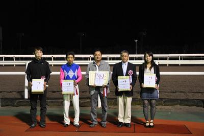 本日24日(木)、門別競馬場で行われた第9回フロイラインカップ (H3)[ステイゴールド賞]では、単勝1番人気クラキンコ号が船橋から参戦のプリマビスティー号に3馬身差をつけて優勝しました(1.11.5)。 同馬は、北斗盃・北海優駿(ダービー)に続き重賞3連勝。