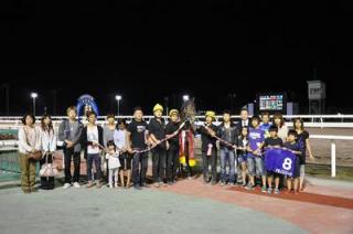 9月9日(木)、門別競馬場では、2600m伝統の一戦、農林水産大臣賞典第54回ステイヤーズカップ(H1)[ゼンノロブロイ賞]が行われ、服部茂史騎手騎乗のマキノスパーク号が2着コパノカチドキ号に7馬身差をつけて優勝しました(2.52.1)。