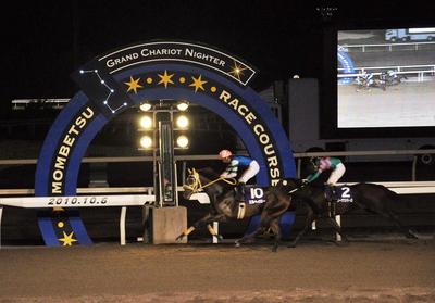10月6日(水)、2歳馬による重賞「大阪スポーツ杯第10回サンライズカップ(H3)[コンデュイット賞]」が行われ、宮崎光行騎手鞍上のエルヘイロー号が2着ダークリバース号に1馬身差をつけて優勝しました(タイム1分49秒1)。