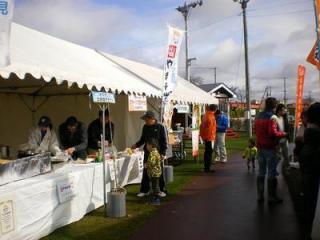 また、食のイベントとしてご当地焼きそば対決「オホーツク北見塩やきそば」VS「富士宮やきそば」や道産牛肉使用ビーフシチュー無料試食会、おにぎり『ブランド米「ゆめぴりか」』試食会 などが実施され、千名を超えるお客様に晩秋の門別競馬場を楽しんでいただきました。