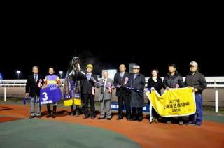 11月4日(木)、農林水産大臣賞典 道新スポーツ杯 第37回北海道2歳優駿(JpnⅢ)[ダイワメジャー賞]が行われ、宮崎光行騎手騎乗のカネマサコンコルド号(北海道)が内々をロスなく立ち回り、直線では鋭く伸びて2着ビッグロマンス号(JRA)に1/2差をつけて優勝しました(1.55.3)。