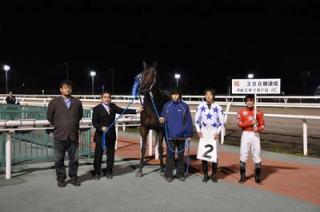 口取り写真では、五十嵐冬樹騎手がプラカードを持ってくれました。なお、300勝達成の表彰式は、11月18日の第10競走本馬場入場後(19:05頃)ウイナーズサークルで実施予定です。