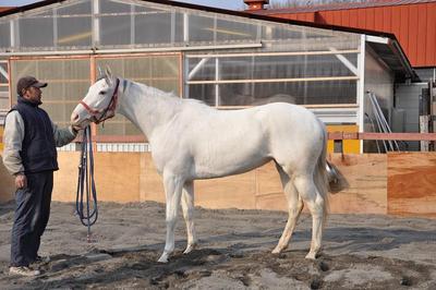 昨年、デビューを予定していたハクホウリリー号(牝3 白毛)が2月20日に休養先の千葉の牧場から門別競馬場に帰厩し、今年開業の齊藤正弘厩舎でトレーニングに励んでいます。