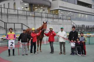 安田 武広調教師 初勝利 2011.06.02 本年度から調教師としてデビューした安田武広調教師が、6月2日(木)門別競馬第7レースに出走したコスモアジル号で初勝利をあげました。 レースは、コスモアジル号が終始先行し、2着馬に3馬身差をつけ優勝。うれしい初勝利となりました(25戦目)。 安田武広調教師のコメント 「やっと調教師としてのスタートラインに立てた気分ですね。優勝出来てうれしいです。厩舎スタッフも一生懸命頑張ってくれていますし、チームワークを大切にこれからも一丸となって頑張っていきたいです。」