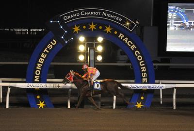 6月30日(木)、本年からスタートしたスーパースプリントシリーズの北海道・岩手地区トライアル グランシャリオ門別スプリント(OP)(ダート1,000m)が行われ、5番人気パフォーマンス号が2着サクラサクラサクラ号に2馬身をつけて優勝しました(タイム:1.00.6)。