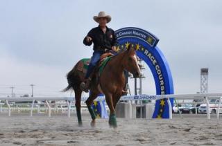 8月9日(火)、門別競馬場では「夏のケイバまつり」が開幕し、開門と同時に多くのお客様が来場しました。午後1時30分にはウエスタンホースショー(協力:DJ-Ranch)が本走路で行われました。