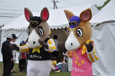 午後2時からは、ホッカイドウ競馬の新マスコット「ナナセちゃん」のお披露目式がとねっこ広場で行われ、ホクトくんと2ショットの登場となりました。