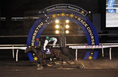 8月18日(木)、ホッカイドウ競馬3歳三冠競走の最終戦、北海道新聞社杯第32回王冠賞(H2)[スペシャルウィーク賞]が行われ、岩橋 勇二騎手騎乗のビューティーリヨ号が2着モリデンクーバー号との叩き合いをクビ差制して優勝しました(レコードタイム 2.47.7 雨 不良)。