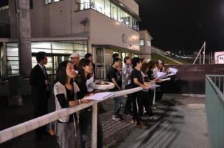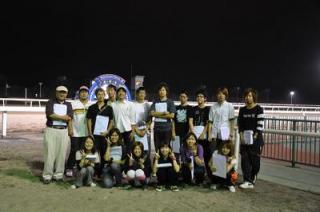 北海学園大学(古林英一ゼミ)学生が門別競馬場に来場 2011.08.30 北海学園大学経済学部古林英一教授ゼミの学生14名が、課外学習の一環として、門別競馬場に来場しました。検量所やレース後の枠場を見学したり、本日怪我から復帰した笹木美典騎手と一緒に記念撮影などを楽しみました。