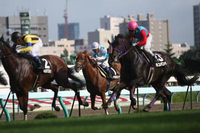9月4日(日)、JRA札幌第11競走札幌日経オープン(3歳以上オープン 芝・2600m )にホッカイドウ競馬からマチカネカミカゼ号(牡6 55 服部茂史騎手 田中淳司調教師 478 ±0)とダブルオーセブン号(牡3 52 井上俊彦騎手 伊藤隆志調教師 476 -6)が出走しましたが、ダブルオーセブン号は8着、マチカネカミカゼ号は9着でした。